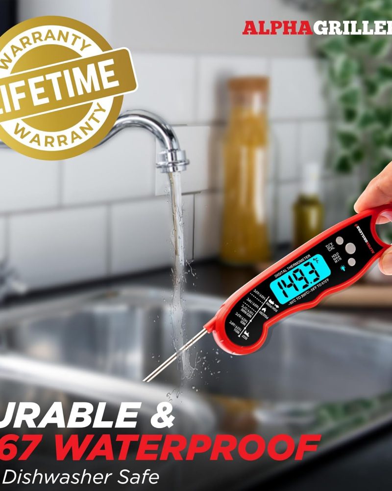 - Water-Resistant | Perfect digital cooking thermometer for meat, our digital meat thermometer for food of any kind is water-resistant IP66 rated and can be washed and cleaned under running water.