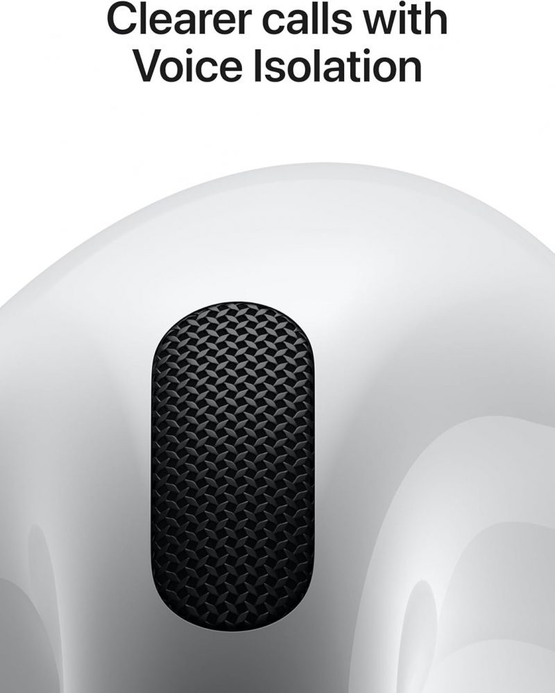 IMPROVED SOUND AND CALL QUALITY — AirPods 4 feature the Apple-designed H2 chip. Voice Isolation improves the quality of phone calls in loud conditions. Using advanced computational audio, it reduces background noise while isolating and clarifying the sound of your voice for whomever you’re speaking to.*