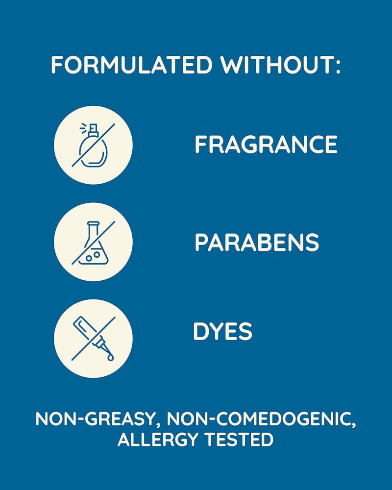 • The non-greasy, non-comedogenic formula of this skin relief moisturizing lotion has been allergy tested and is specially formulated for sensitive skin and is free of fragrances, parabens and dyes