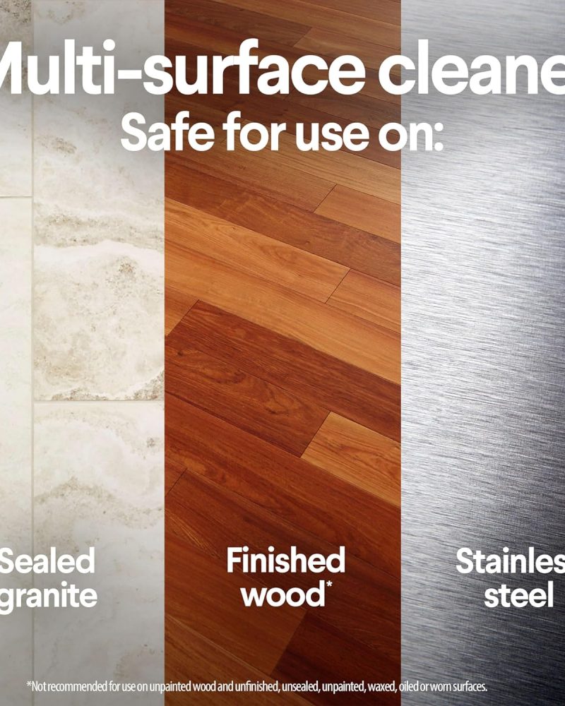 - MULTI SURFACE CLEANER: Wipes are safe for use on hard non-porous surfaces such as finished wood, sealed granite, stainless steel and non food contact surfaces in the home, office, classroom, car interiors and more