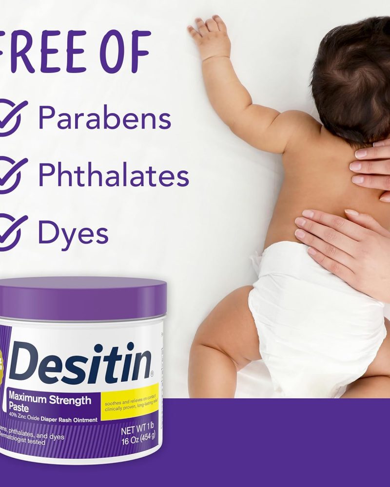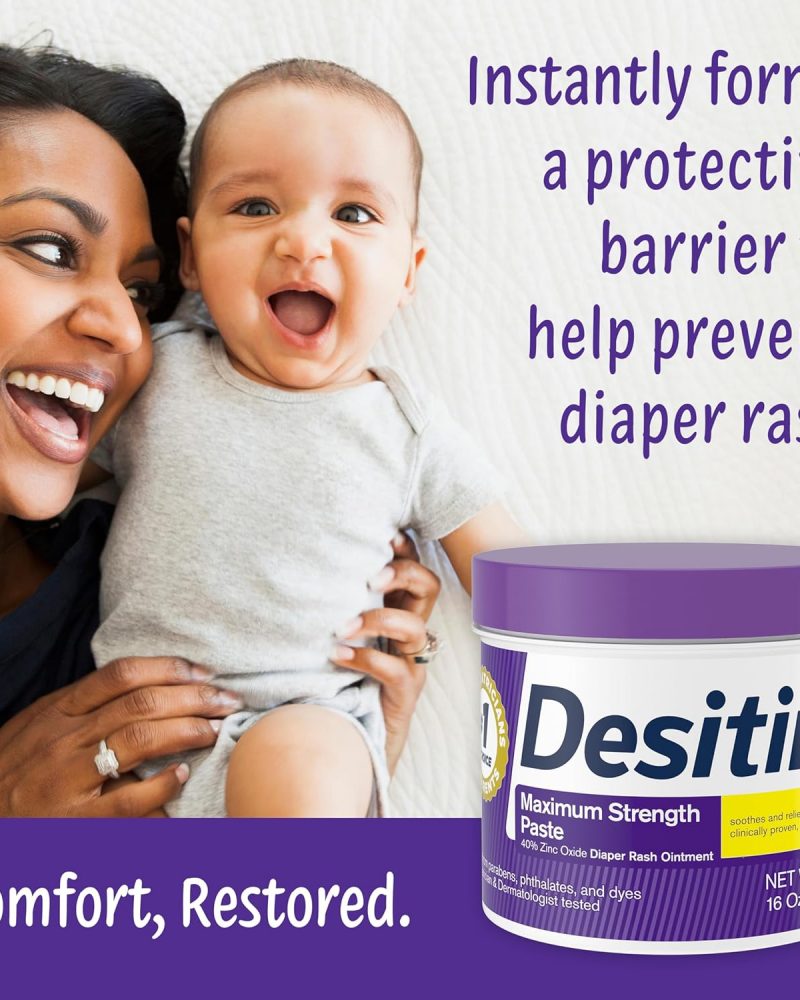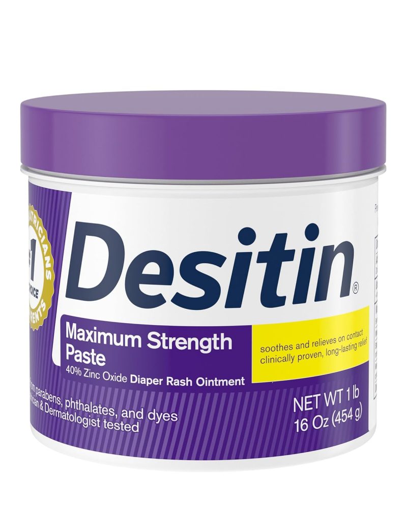 - 16-ounce jar of Desitin Maximum Strength Diaper Rash Paste with 40% zinc oxide works on contact to treat and prevent diaper rash discomfort