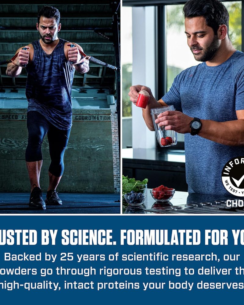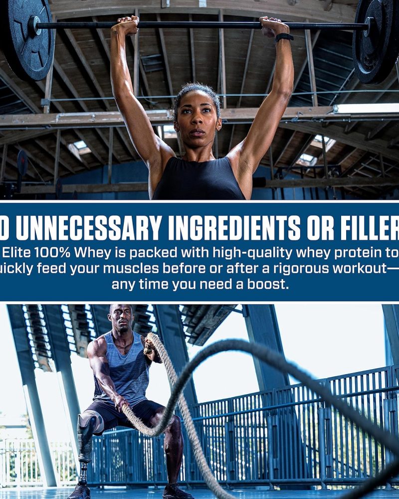 Whether you’re preparing for a hard workout, recovering from intense training in the gym or simply looking to increase your protein intake, Elite 100% Whey Protein is the perfect anytime protein. Make the most of your workouts with Elite 100% Whey Protein. Each serving of Elite 100% Whey Protein is packed with 25 grams of high-quality, fast-digesting and absorbing whey protein, including whey protein concentrate, whey protein isolate and whey peptides to support even the most rigorous athletic and fitness goals.