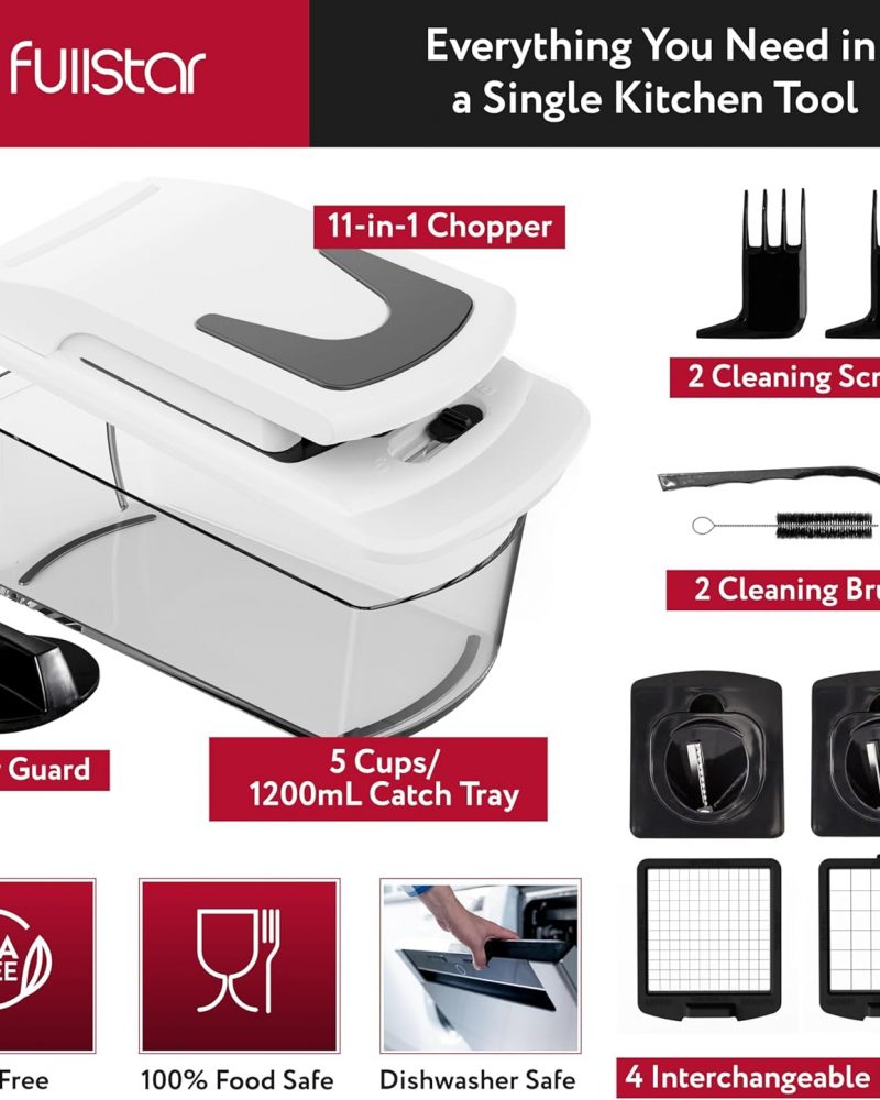 - A Kitchen Essential – Whether you’re a novice cook or a seasoned pro, the Fullstar Food Chopper is a must-have in any kitchen. It’s versatile and easy to use. Please read the instruction manual provided with the Fullstar food chopper closely before use.