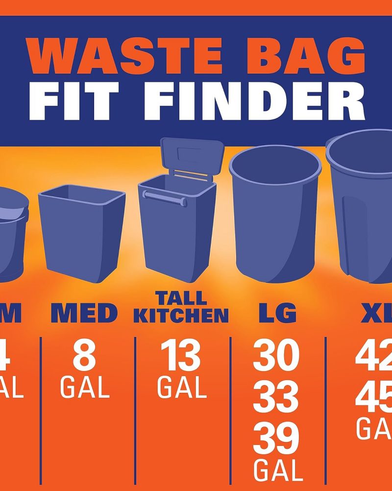 - Triple-Action Technology—These tall kitchen garbage bags stretch and expand to accommodate oversized loads without punctures, leaks or tears