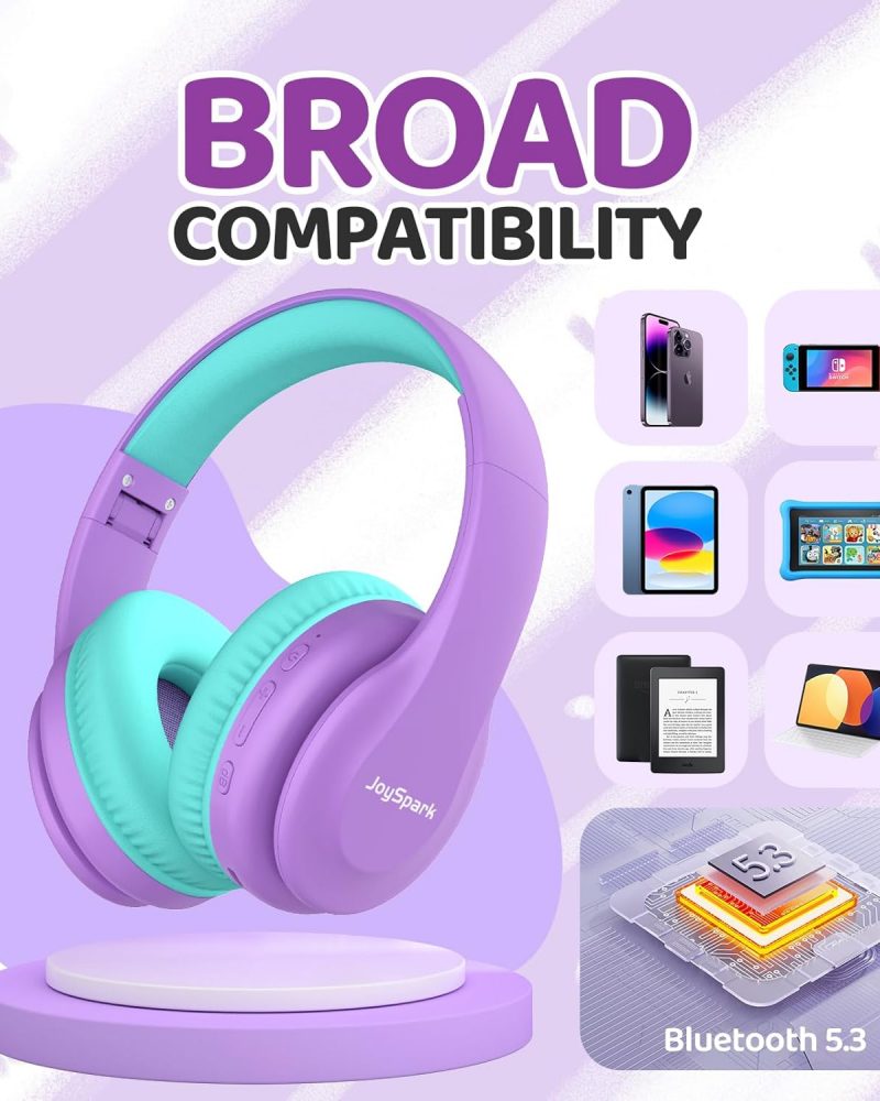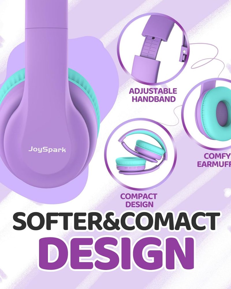 Designed for a delightful and immersive audio experience that sparks joy! With their vibrant colors and kid-friendly design, the JoySpark kids bluetooth headphones are perfect for young music enthusiasts to enjoy their favorite tunes wirelessly.