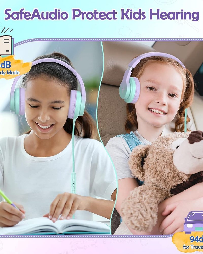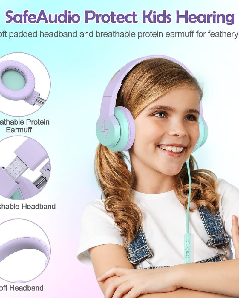 - [In-line remote & 85/94dB Volume Limit]: One Button control, including play/pause/answer/hang-up, next track/previous track. The toddler headphone adopt volume limiter(85dB/94dB) to protect vulnerable and sensitive ears of kids. Let your child love what they’re listening to, at a safe volume.