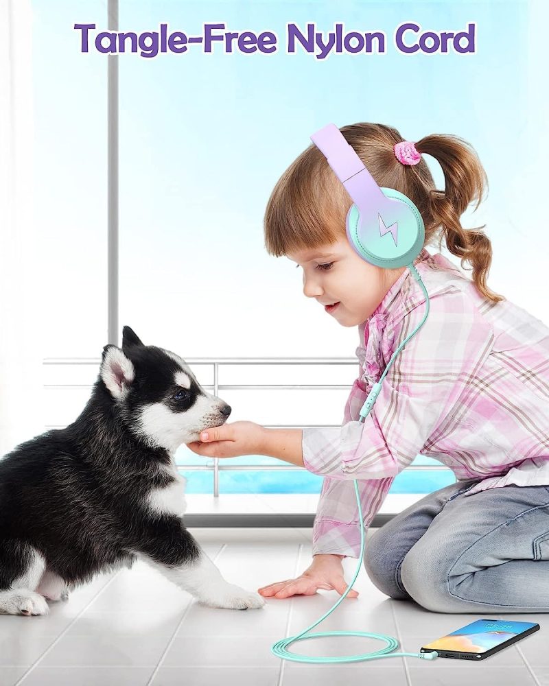 - [Easy-adjust & Foldable space-saving Design]:Adjustable headband provides an ultra-comfortable fit for adults, teens and children from 3 years and up. Take these wired headphones wherever your kids go. Just fold them up, twist up the cord, and be on their merry way.