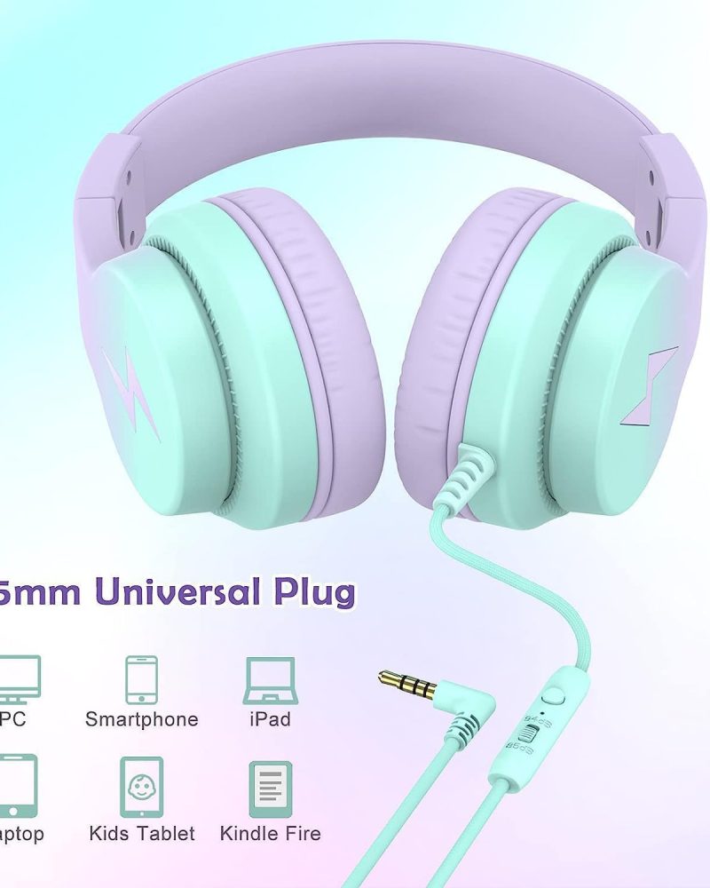 - [Stereo Sound & Microphone Feature]:Candy Bila kids headphones with mic is convenient for kids’ online learning and communication at home. Stereo children headphone with excellent sound effect, and support devices with 3.5mm audio jack like Kindle Fire Tablets, smartphones, Laptop, PC etc.