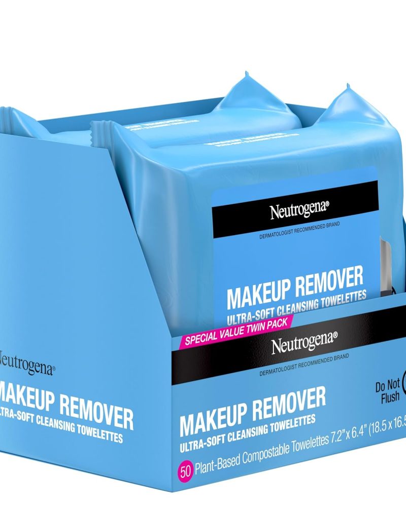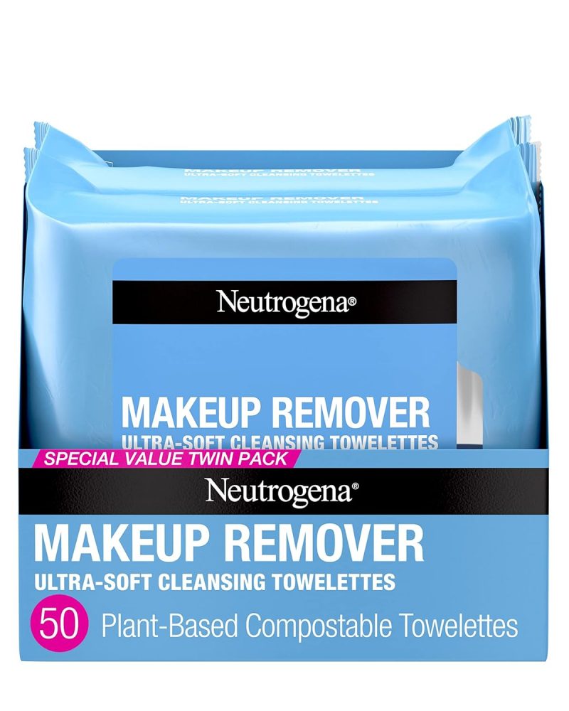 Neutrogena Makeup Remover Wipes, Ultra-Soft Cleansing Facial Towelettes for Waterproof Makeup, Alcohol-Free, Plant-Based, Twin Pack, 25 Count (Pack of 2)