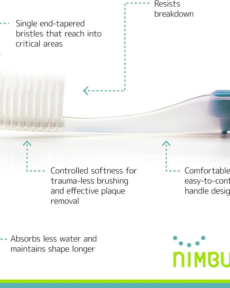 DURABLE â Nimbus bristles absorb less water which allows the brush to maintain its shape longer than standard Nylon bristles. Additionally, the bristles resist breakdown brought on from chemicals and natural mouth fluids which allows you to use Nimbus longer than average toothbrushes.