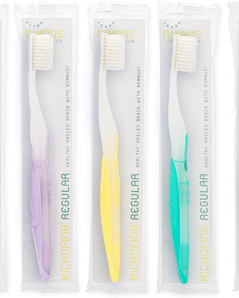EXTRA SOFT BRISTLES â The Nimbus Toothbrush uses Microfine Technology which utilizes two-levels of bristles to create unique softness and stability. The long single-end tapered fine bristles reach into areas not accessible to conventional bristles while the short end-rounded bristles are used to support and optimize plaque removal.
