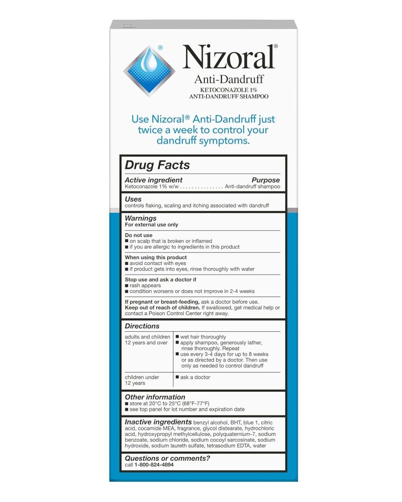 Nizoral anti dandruff hair shampoo Features: Controls flaking, scaling and itching associated with dandruff. Protect from light and freezing.