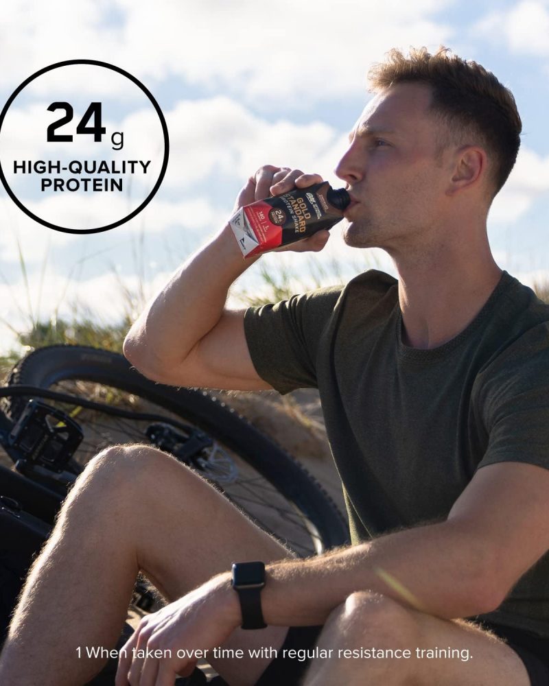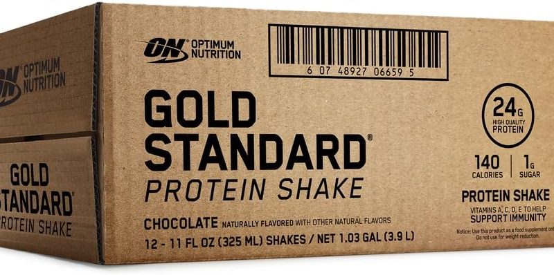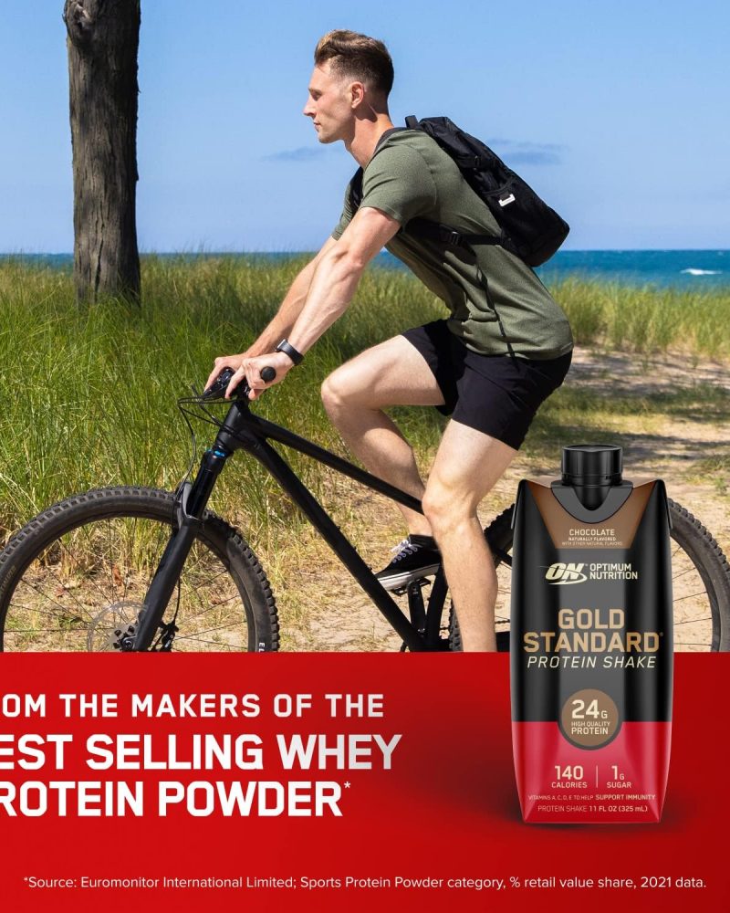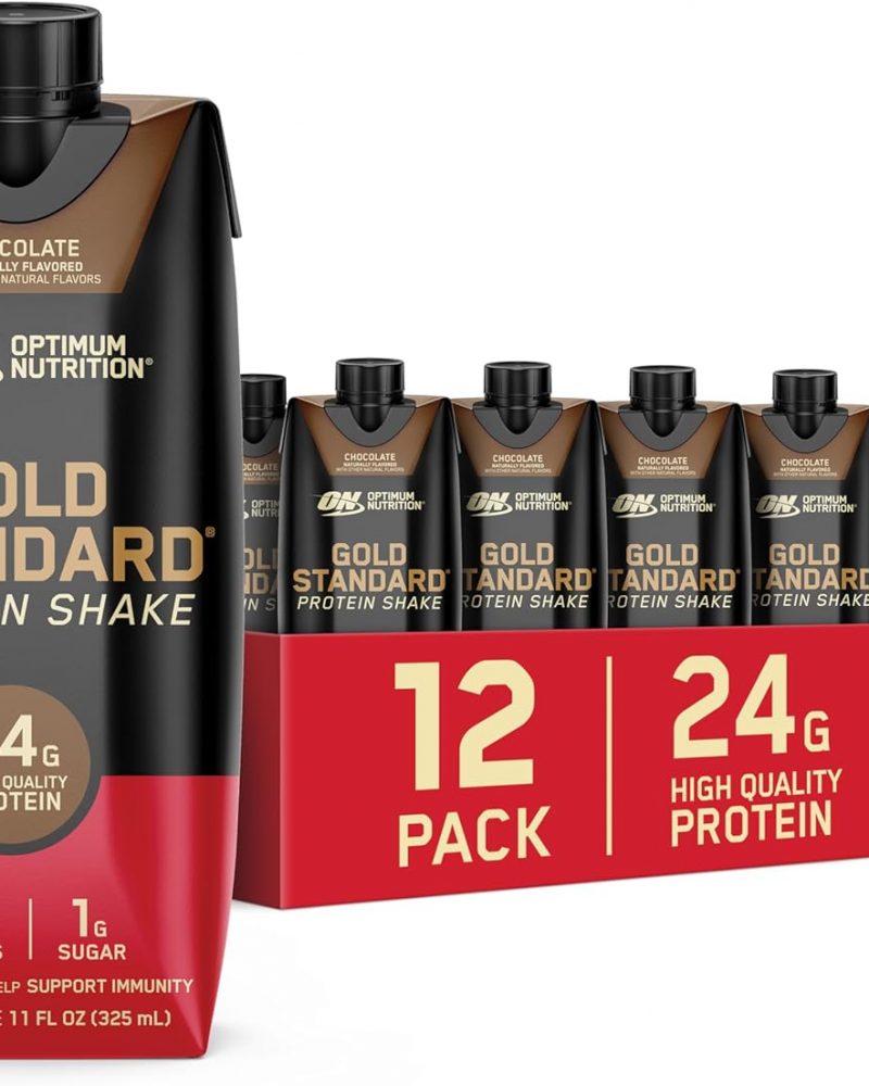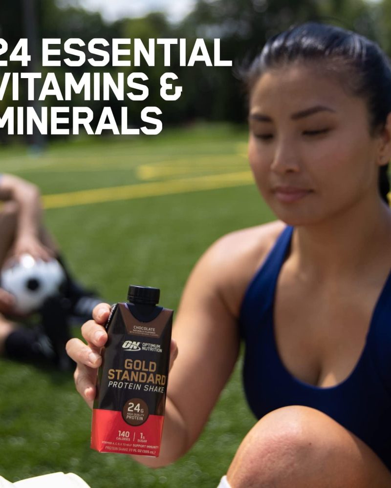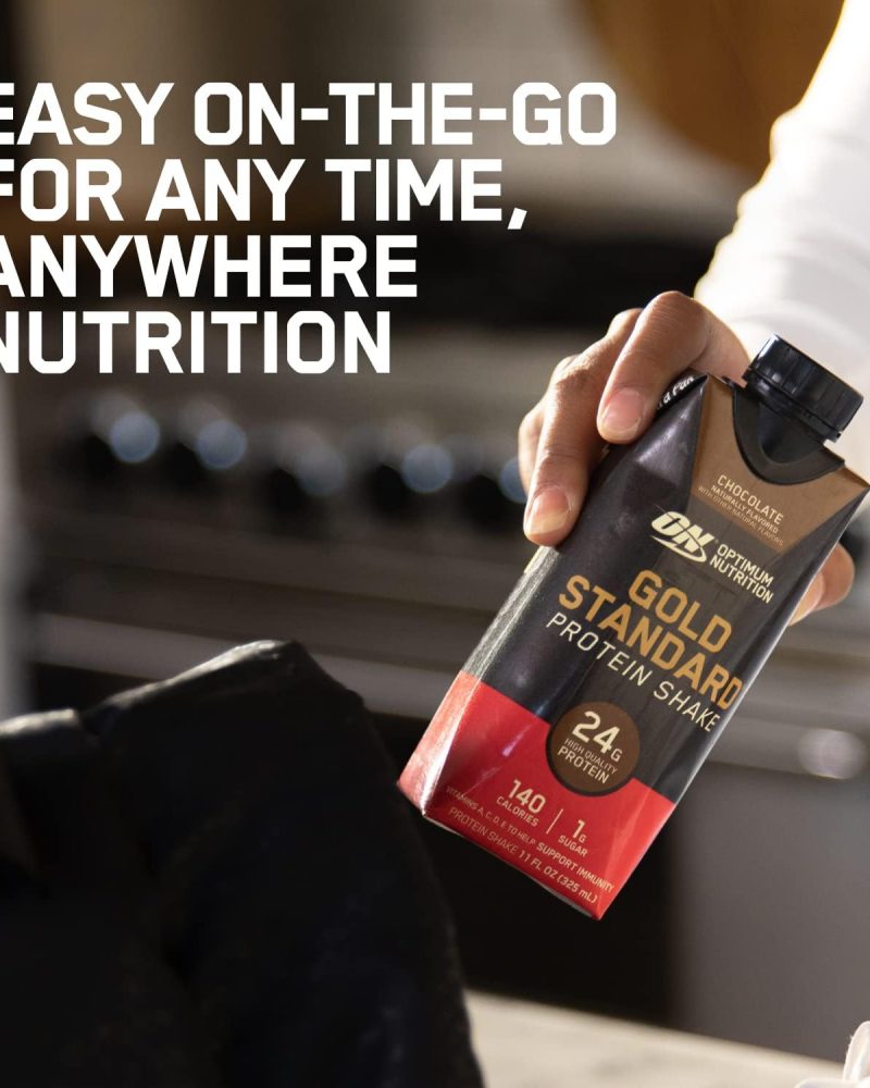 - OPTIMUM NUTRITION GOLD STANDARD PROTEIN SHAKE – Offers 24 grams of premium protein in two delicious-tasting flavors – Chocolate and Vanilla