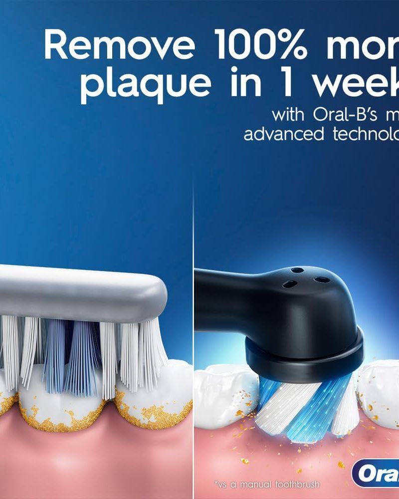 FOR HEALTHIER GUMS IN JUST 1 WEEK remove 100% more plaque* with ORAL-B’s MOST ADVANCED TECHNOLOGY *vs a manual brush