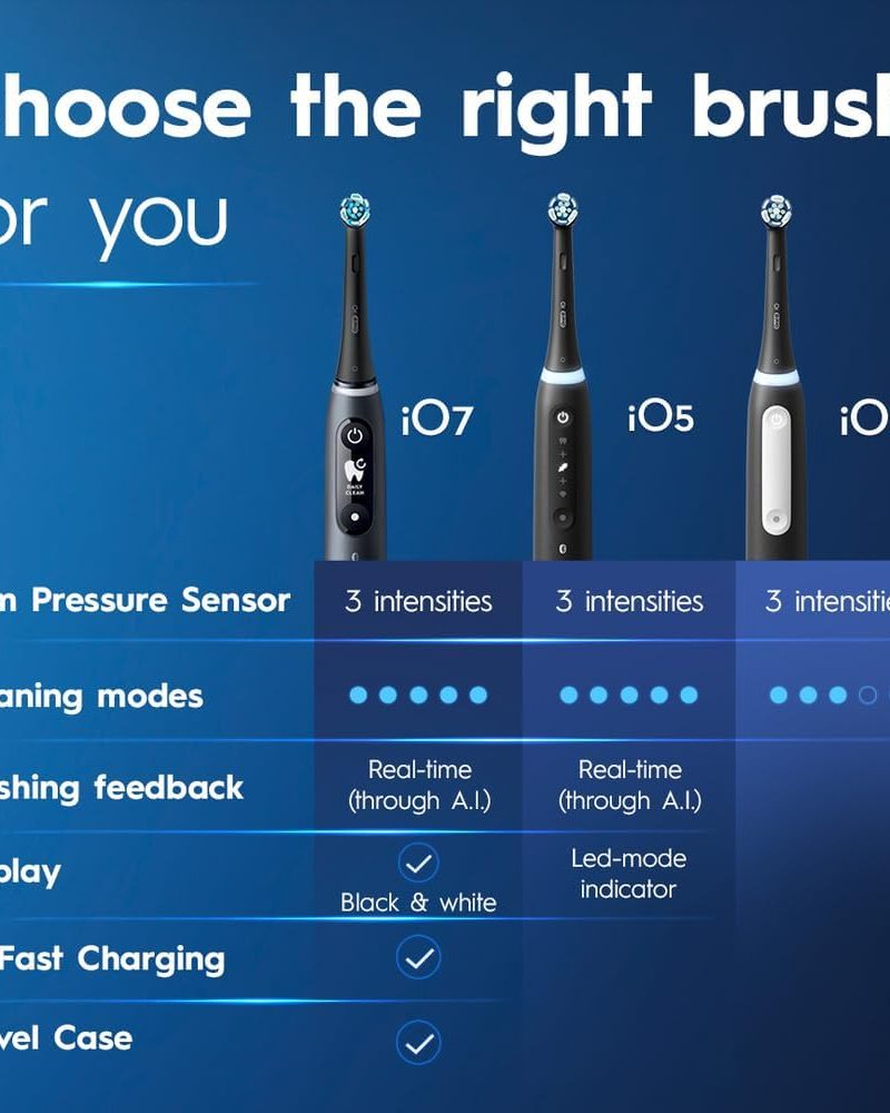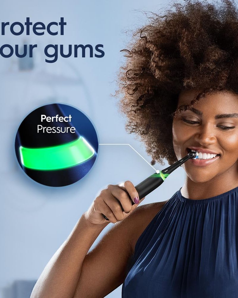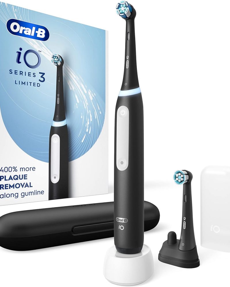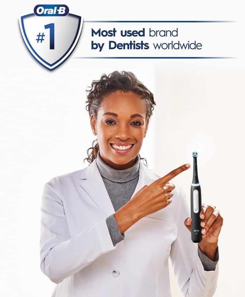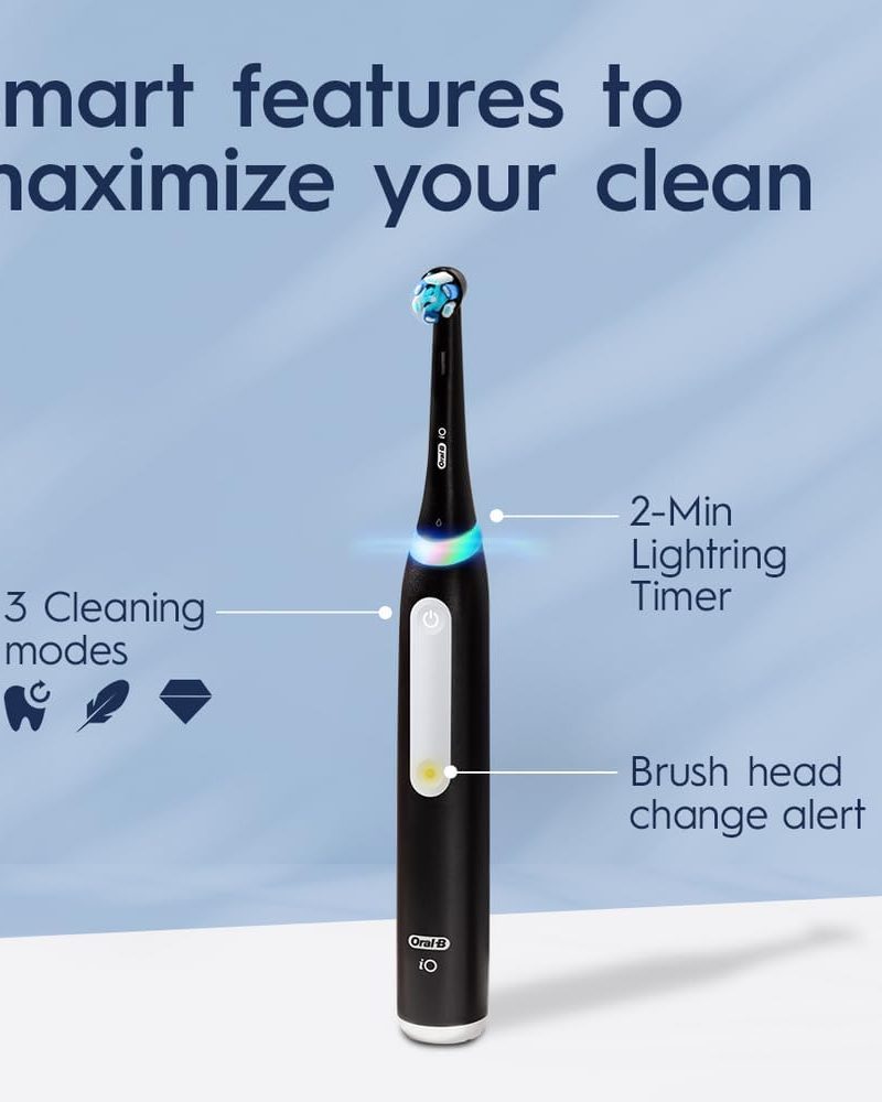 The iO is Oral-B’s best technology: Clinically Proven 400% More Plaque Removal Along Gumline versus a regular manual toothbrush. A Round head and gentle micro-vibrations, the Magnetic interaction delivers smooth, harmonious motion through a Synchronized cleaning action (micro-vibrations synced with oscillations). A Built-in-2-Minute Timer ensures an even easier experience, helping you get an optimal clean on all your teeth. The Oral-B’s quadrant timer breaks the two minutes up into four 30-second intervals to clean each quadrant of your mouth; we keep the time, so you don’t have to. Delivering the perfect pressure is done by having a Pressure Sensor. The Pressure Sensor Indicates optimal cleaning pressure and warns of over pressure. With an accompanying travel case, you’ll have a fresh clean everywhere you go. We’re with you on your next trip or even your mid-day on-the go brushing! Best of all, it is brought to you by Oral-B-the #1 brand used by dentists worldwide.* *Based on surveys of a representative worldwide sample of dentists carried out for P&G regularly. Do not use on children under age 3. Replace brush (head) every 3 months or sooner if brush head becomes worn.
