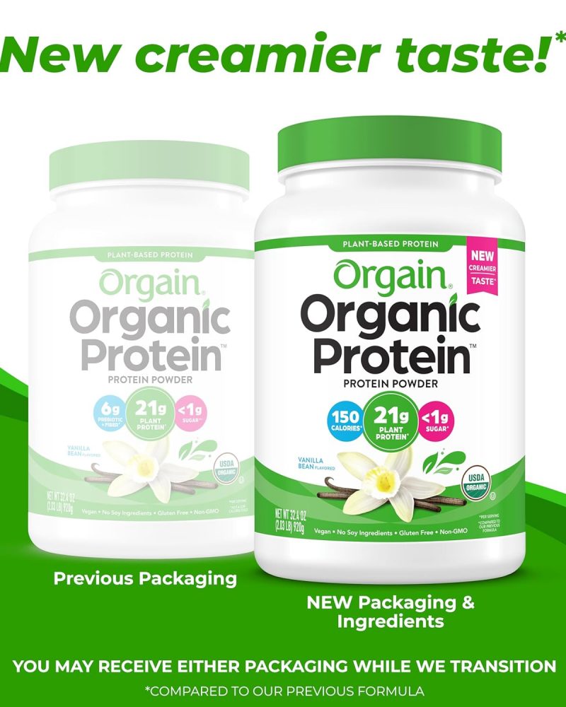 - WHAT TO EXPECT: Includes 1 (2.03 Lb) (20 Servings) (Packaging May Vary) ready to mix Orgain Organic Vanilla Bean Protein Powder. Each serving contains 150 Calories (2 Scoops).