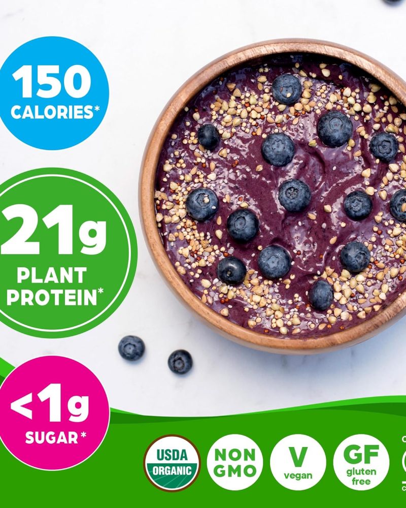 - CLEANER INGREDIENTS: 21g of Organic plant based protein and 1g sugar. Our protein blend contains Organic peas, brown rice & chia seeds with all 9 essential amino acids. Each serving has low net carbs and features 6g of prebiotic + fiber* for gut support.