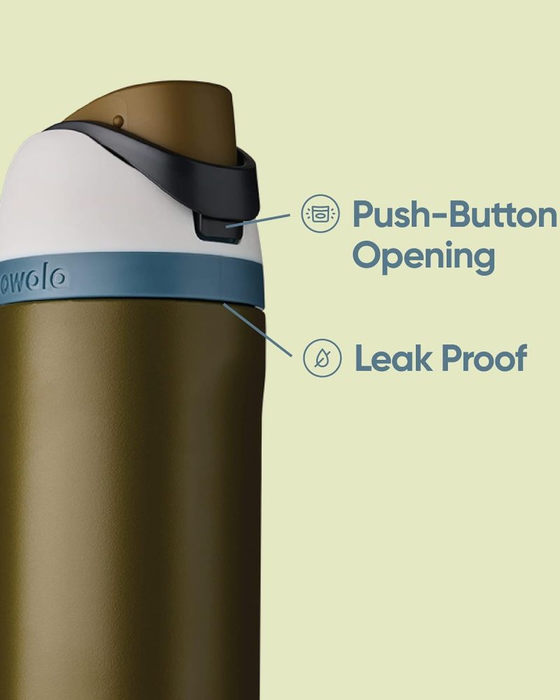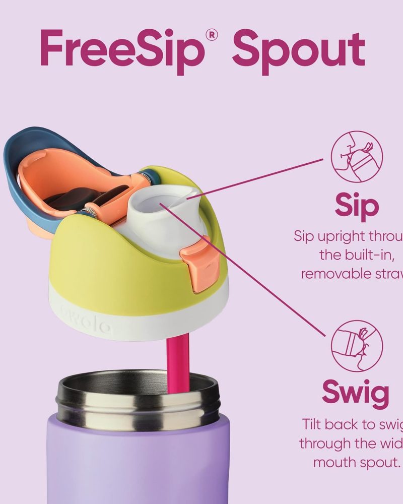 • 32-ounce insulated stainless-steel water bottle with a FreeSip spout and push-button lid with lock