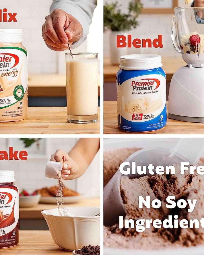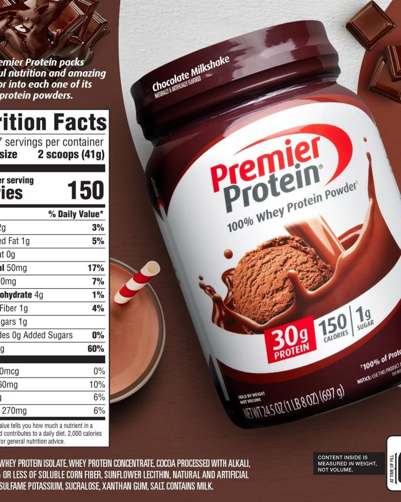 Each serving of premier protein powder contains 30g Protein, 150 calories, and 1g Sugar. Gluten free & No Soy Ingredients. Made with 100% protein from Whey, it is perfect for use any time of the day, from breakfast to afternoon snack to post-exercise fuel. Try it mixed with water or milk, blended into your favorite smoothie recipe, or baked into protein packed recipes. Each canister contains 17 servings. Available in 3 delicious, indulgent flavors: Cafe Latte, Chocolate Milkshake and Vanilla Milkshake.