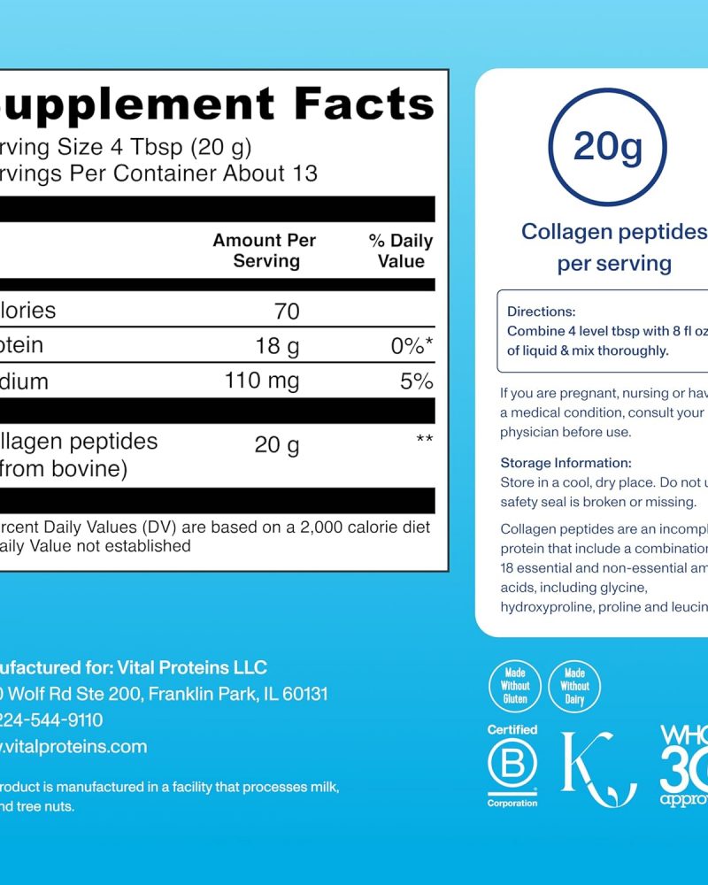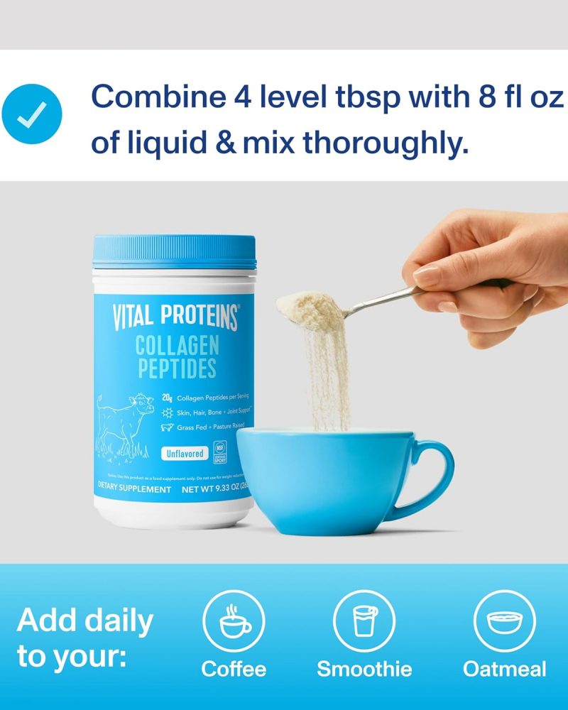 - Easy To Use: Vital Proteins Collagen Peptides is easily digested and dissolves in cold or hot liquids, like coffee, tea and smoothies.