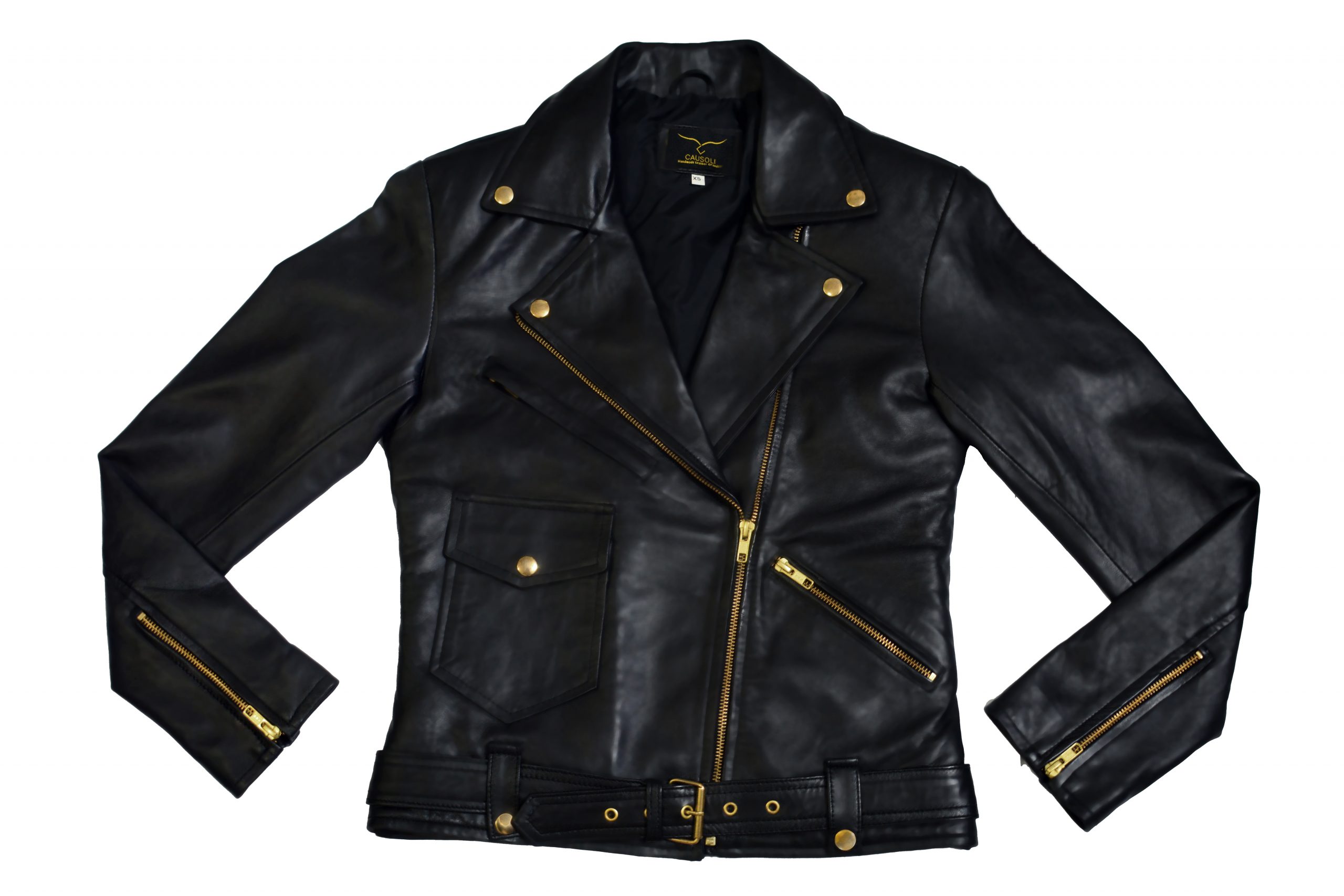 Womens Motorcyle Jacket Classic Cowhide Leather with YKK Zipper in Black
